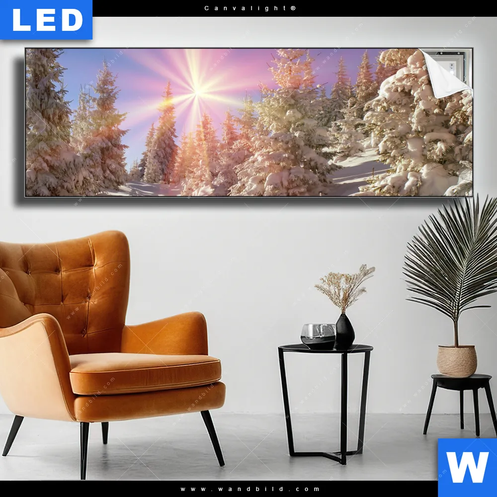 Canvalight® TEX Leuchtbild | Verschneiter Wald | Panorama