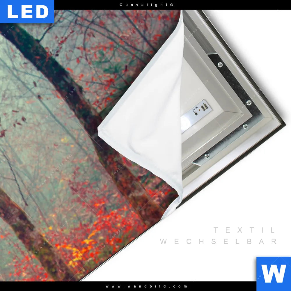 LED-Textilrahmen-Bild mit austauschbarem Landschaften, Wald - Bäume Textil-Druck (Wechselbild)