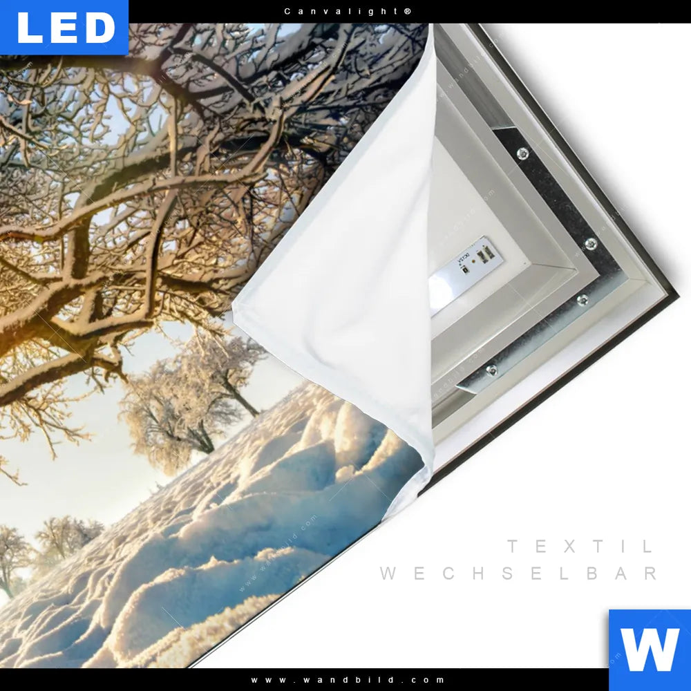 LED-Textilrahmen-Bild mit austauschbarem Landschaften, Winter, Wald - Bäume Textil-Druck (Wechselbild)