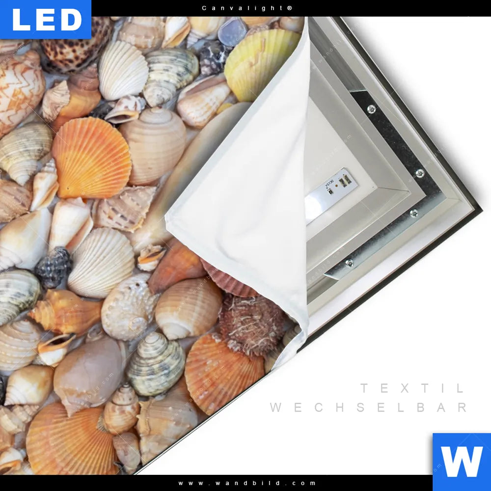 Canvalight® TEX Leuchtbild | Viele Muscheln | Hochformat