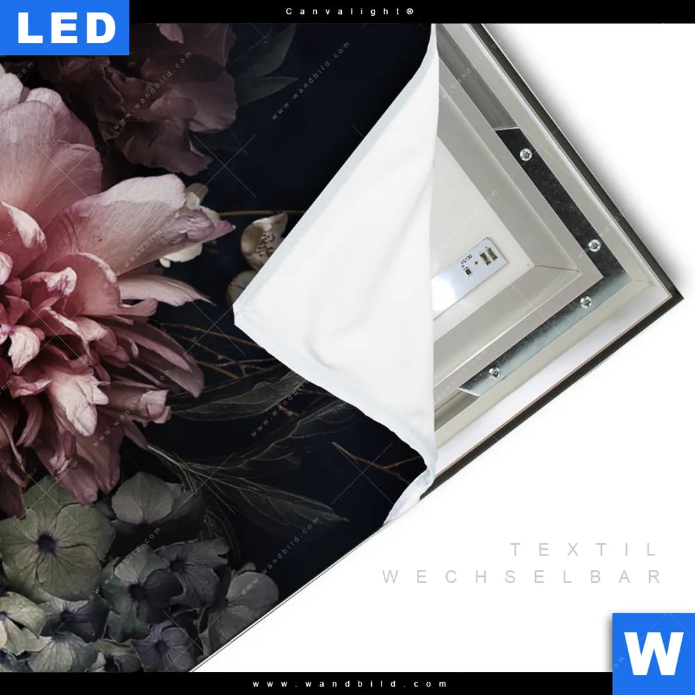 LED-Textilrahmen-Bild mit austauschbarem Blumen - Botanik Textil-Druck (Wechselbild)