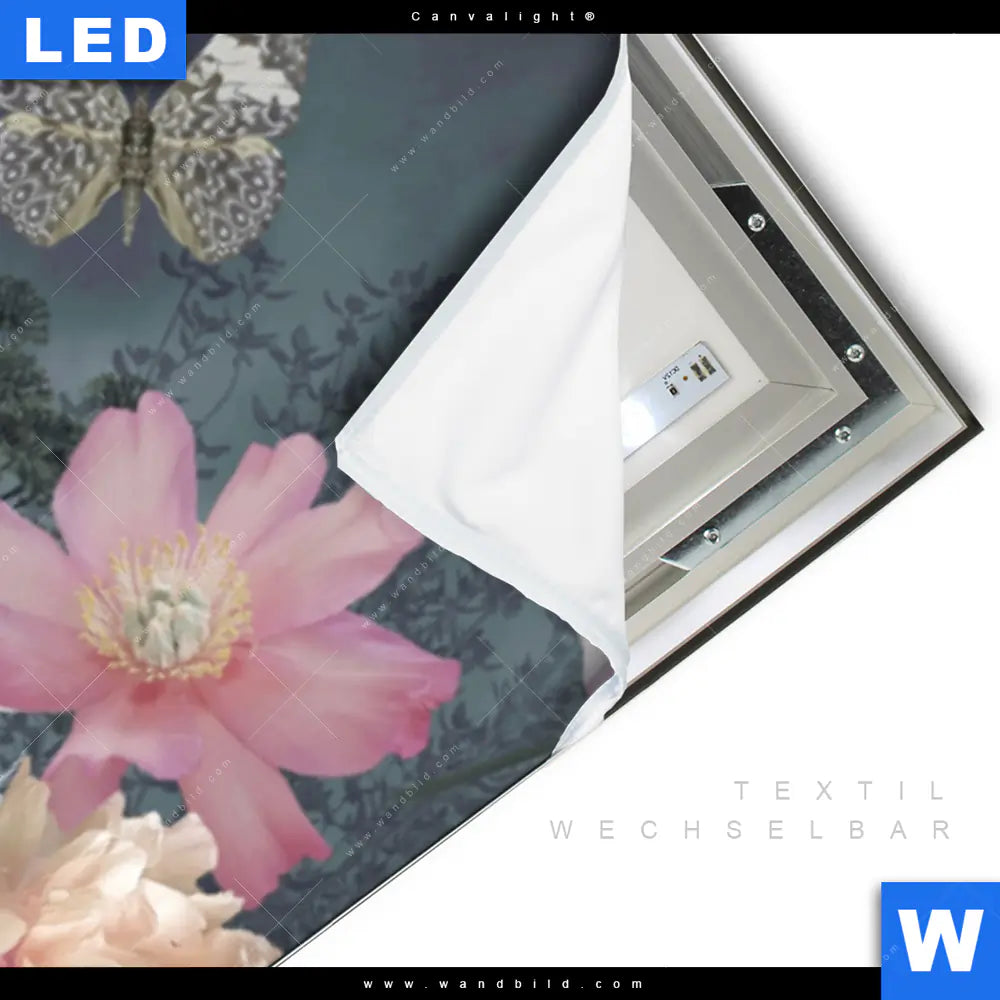 LED-Textilrahmen-Bild mit austauschbarem Blumen - Botanik Textil-Druck (Wechselbild)