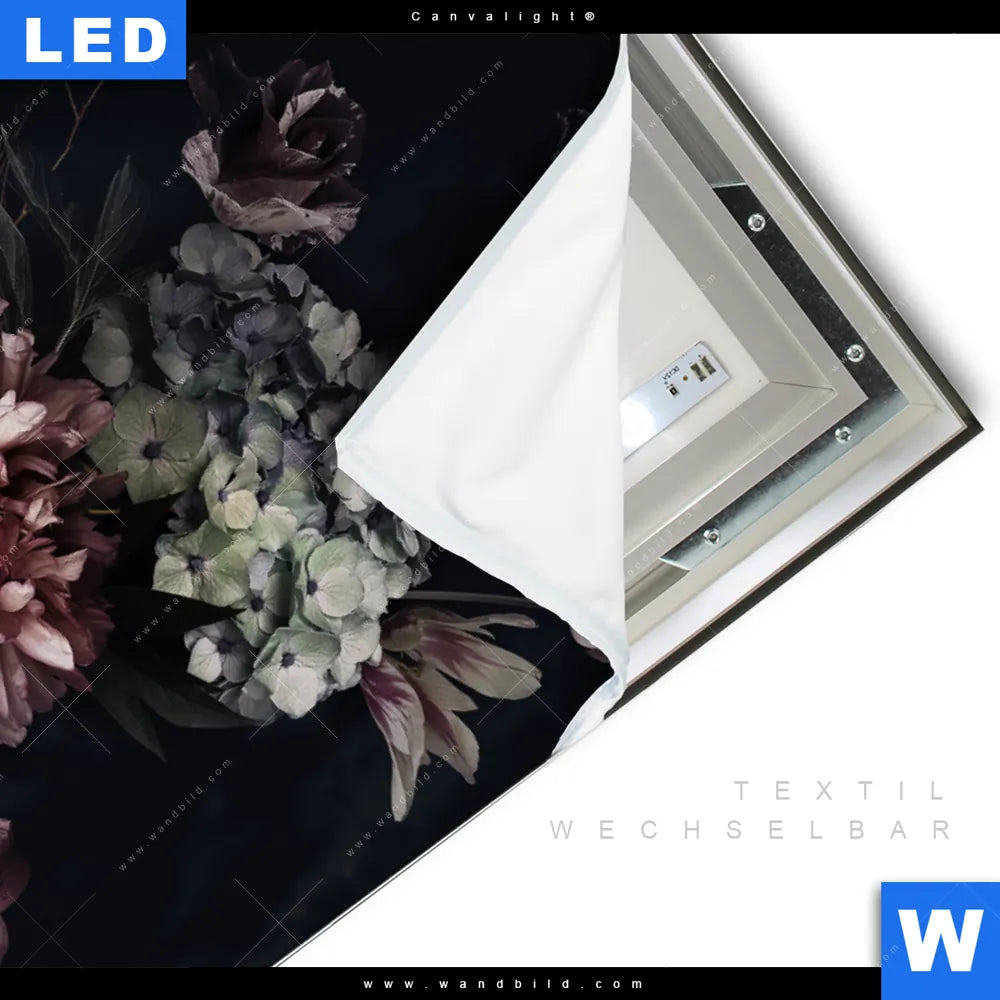 LED-Textilrahmen-Bild mit austauschbarem Blumen - Botanik Textil-Druck (Wechselbild)