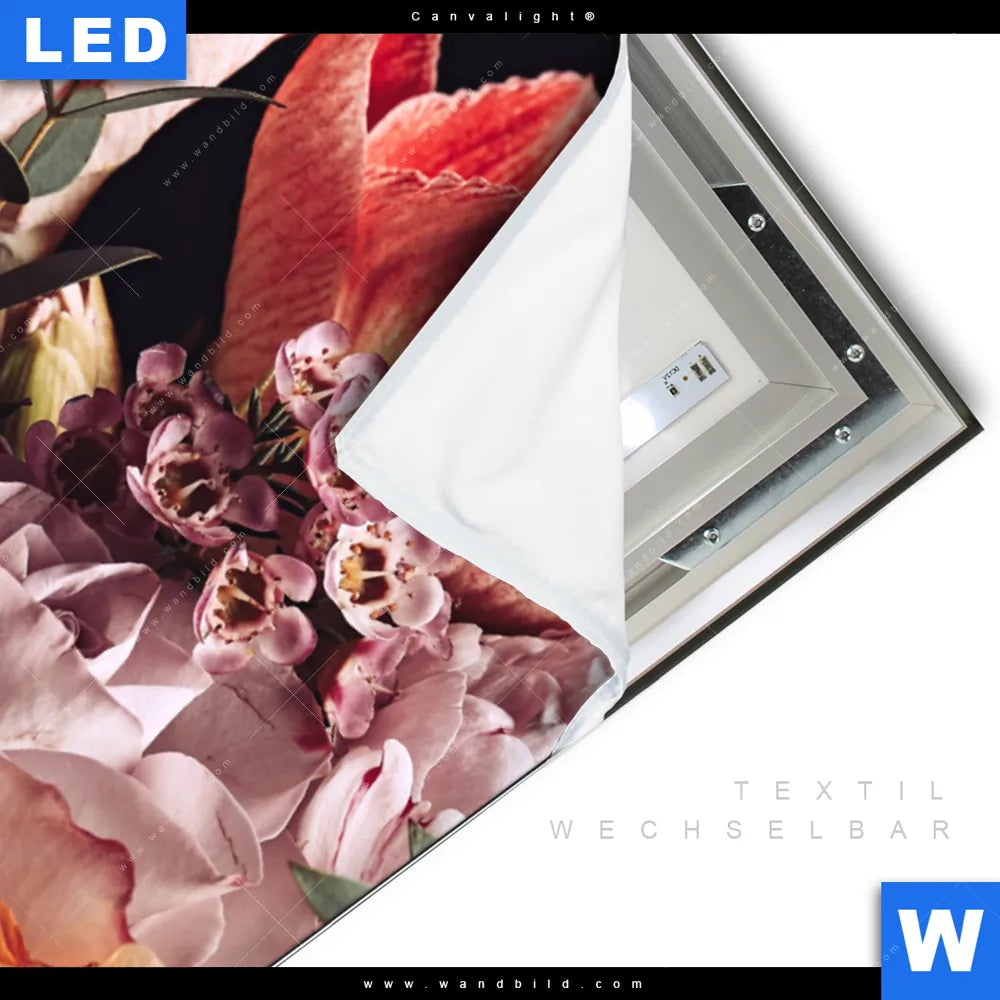 LED-Textilrahmen-Bild mit austauschbarem Blumen - Botanik Textil-Druck (Wechselbild)