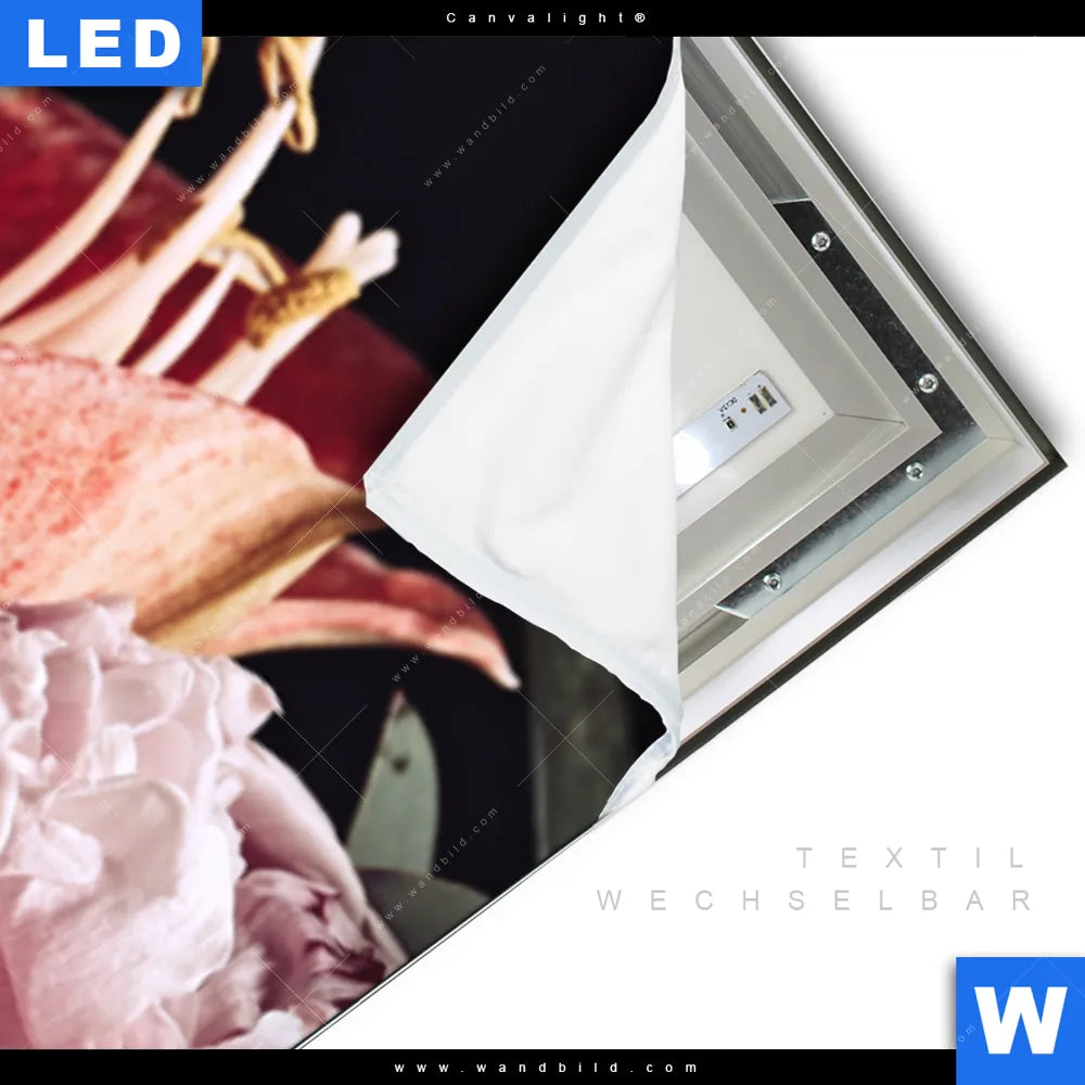 LED-Textilrahmen-Bild mit austauschbarem Blumen - Botanik Textil-Druck (Wechselbild)