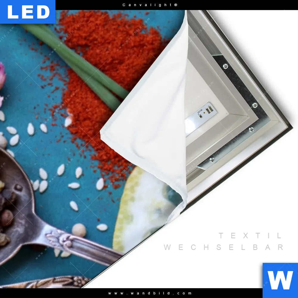 LED-Textilrahmen-Bild mit austauschbarem Essen - Trinken Textil-Druck (Wechselbild)