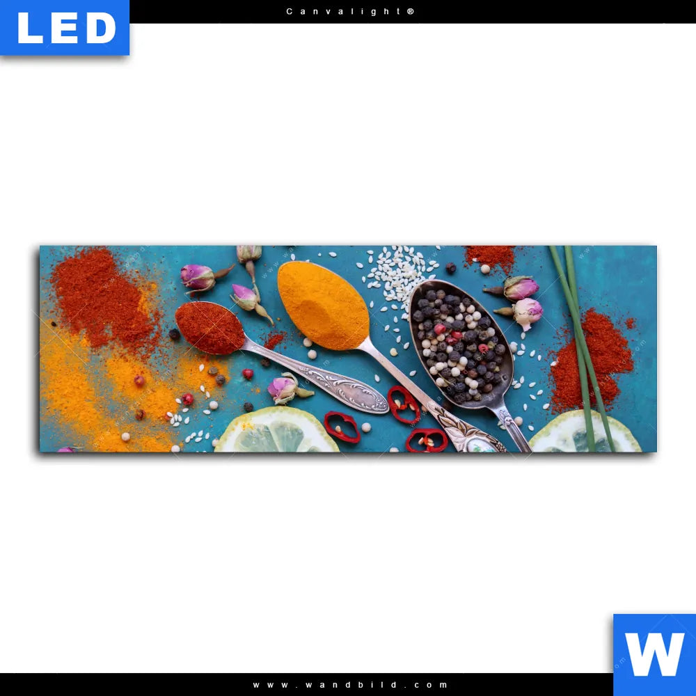 Canvalight® TEX Leuchtbild | Vintage Silberlöffel mit Gewürzen | Panorama
