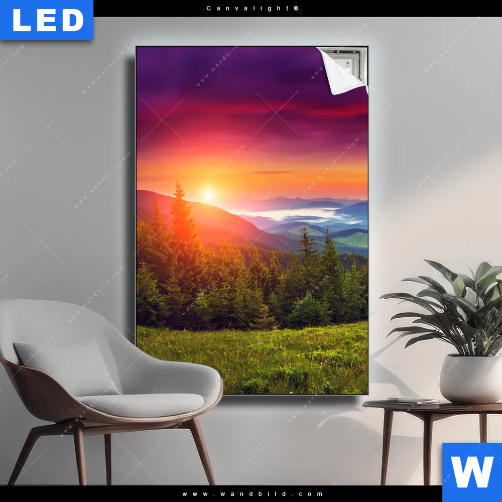 Canvalight® Leuchtbild | Wald bei Sonnenuntergang | Hochformat