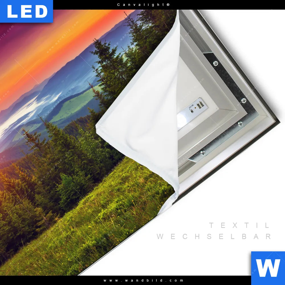 LED-Textilrahmen-Bild mit austauschbarem Landschaften, Wald - Bäume Textil-Druck (Wechselbild)