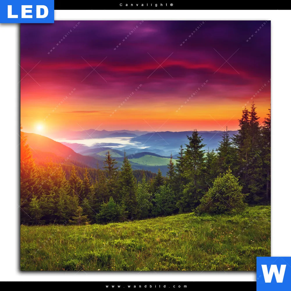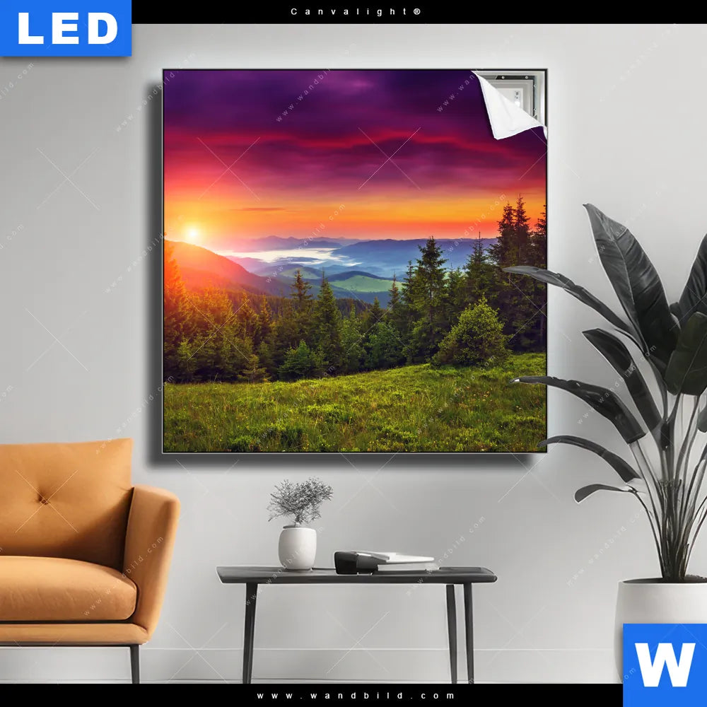 Canvalight® TEX Leuchtbild | Wald bei Sonnenuntergang | Quadrat