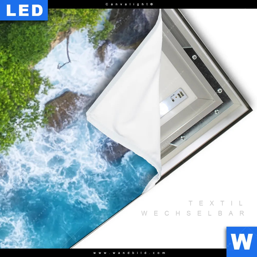 LED-Textilrahmen-Bild mit austauschbarem Landschaften, Wald - Bäume, Strand - Meer Textil-Druck (Wechselbild)