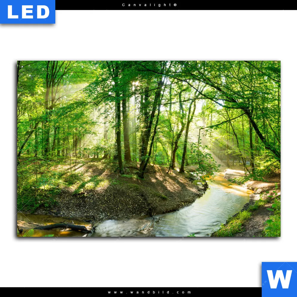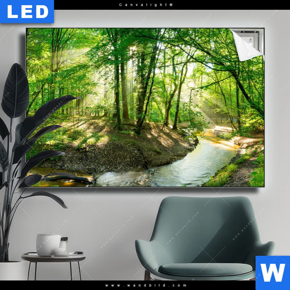 Canvalight® Leuchtbild | Wald mit Bach | Querformat