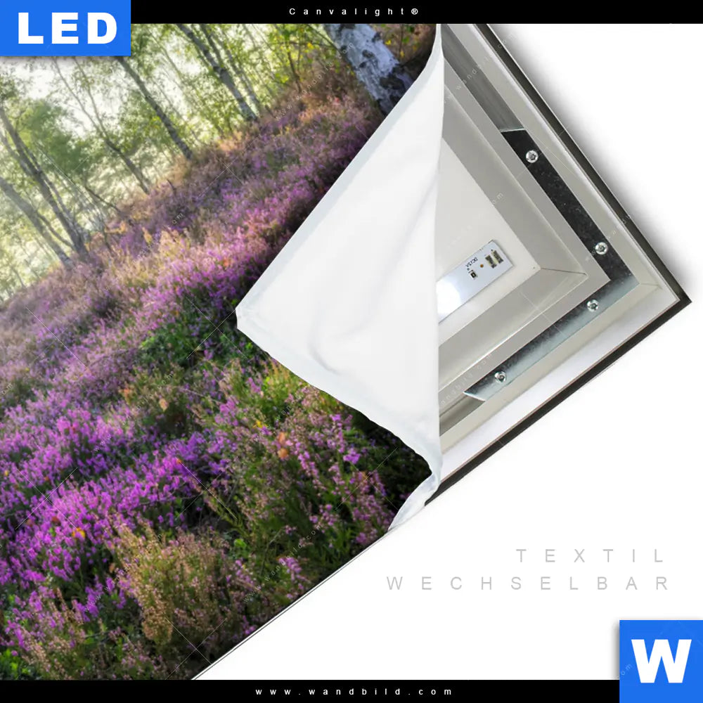 LED-Textilrahmen-Bild mit austauschbarem Wald - Bäume, Landschaften, Blumen - Botanik Textil-Druck (Wechselbild)