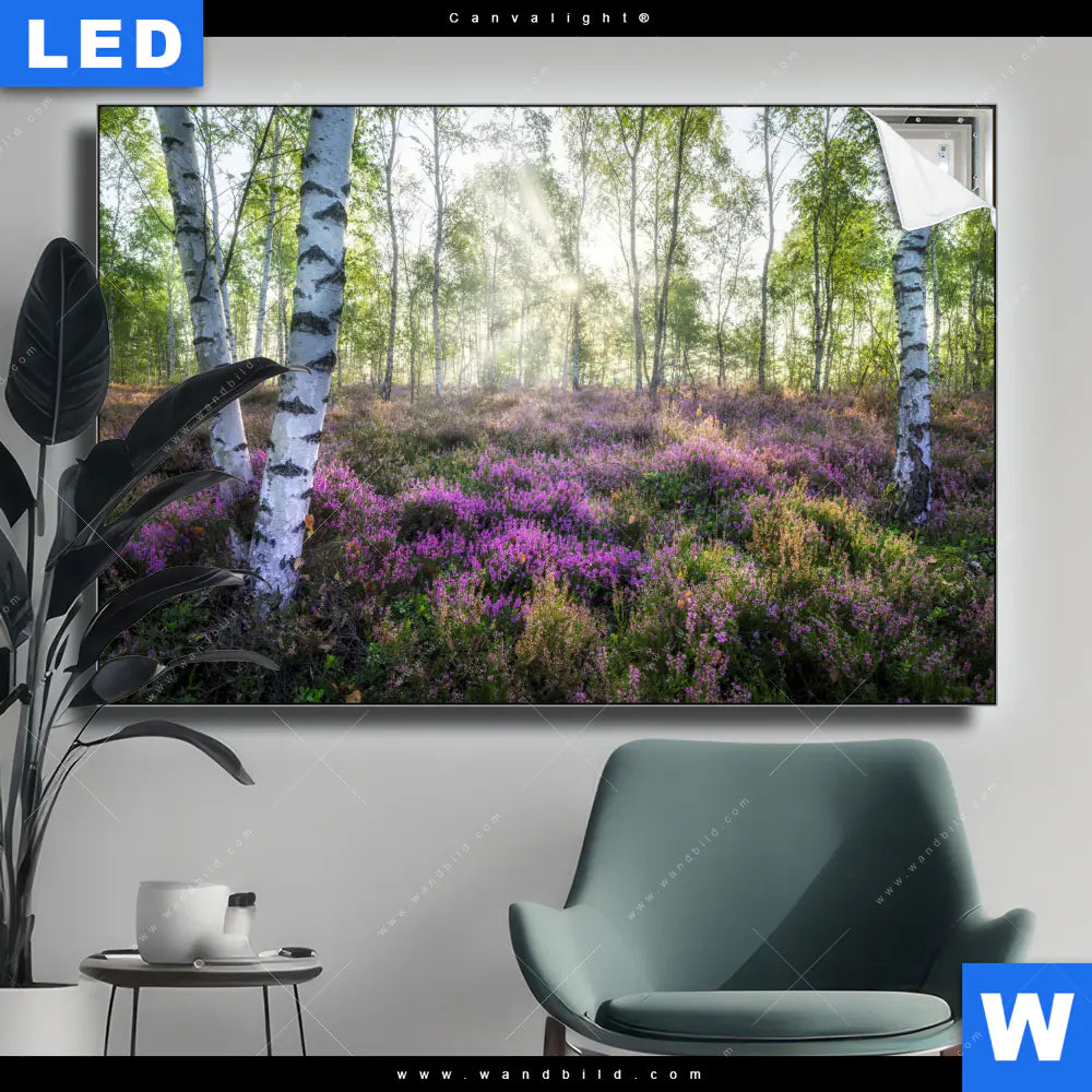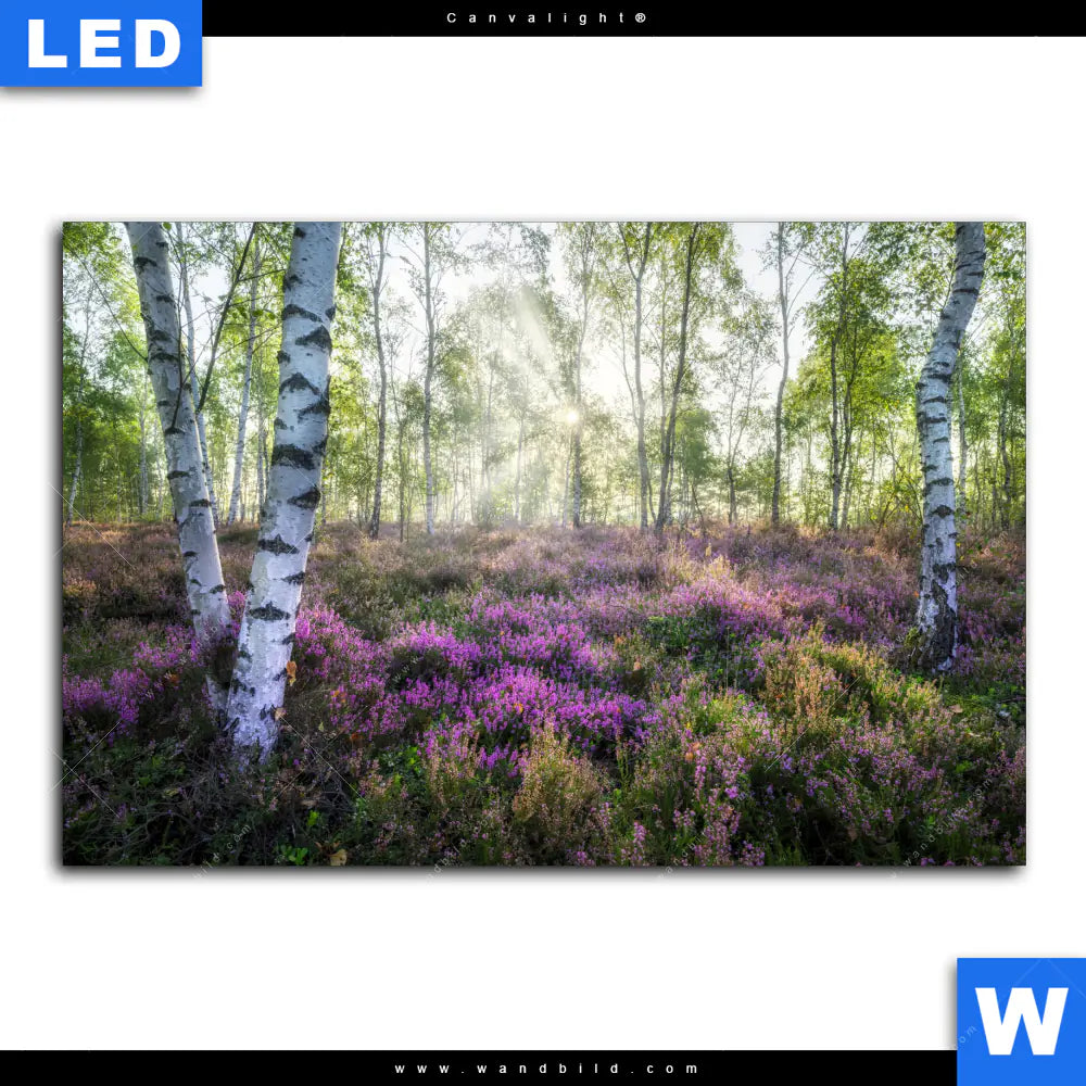 Canvalight® Leuchtbild | Wald mit Heideblumen | Querformat