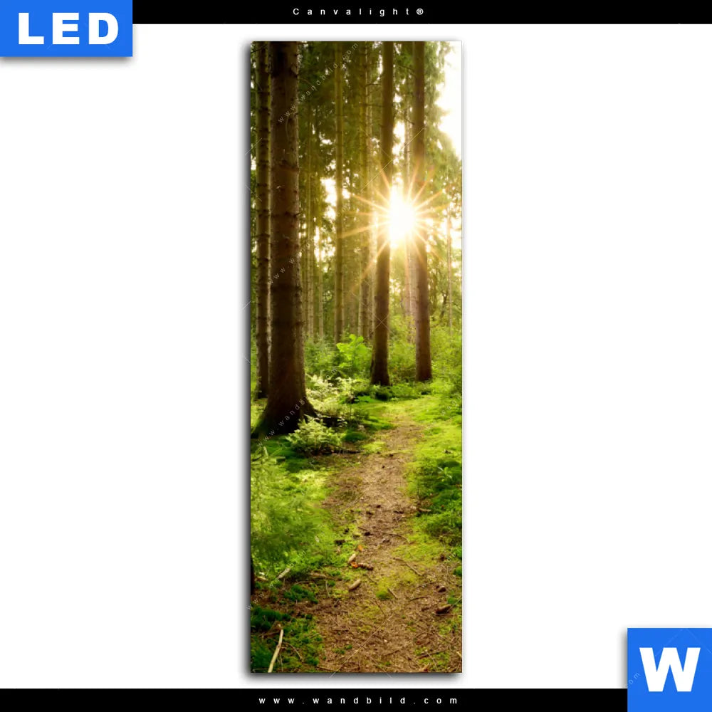 Canvalight® Leuchtbild | Wald mit Sonnenstrahlen No.2 | Schmal