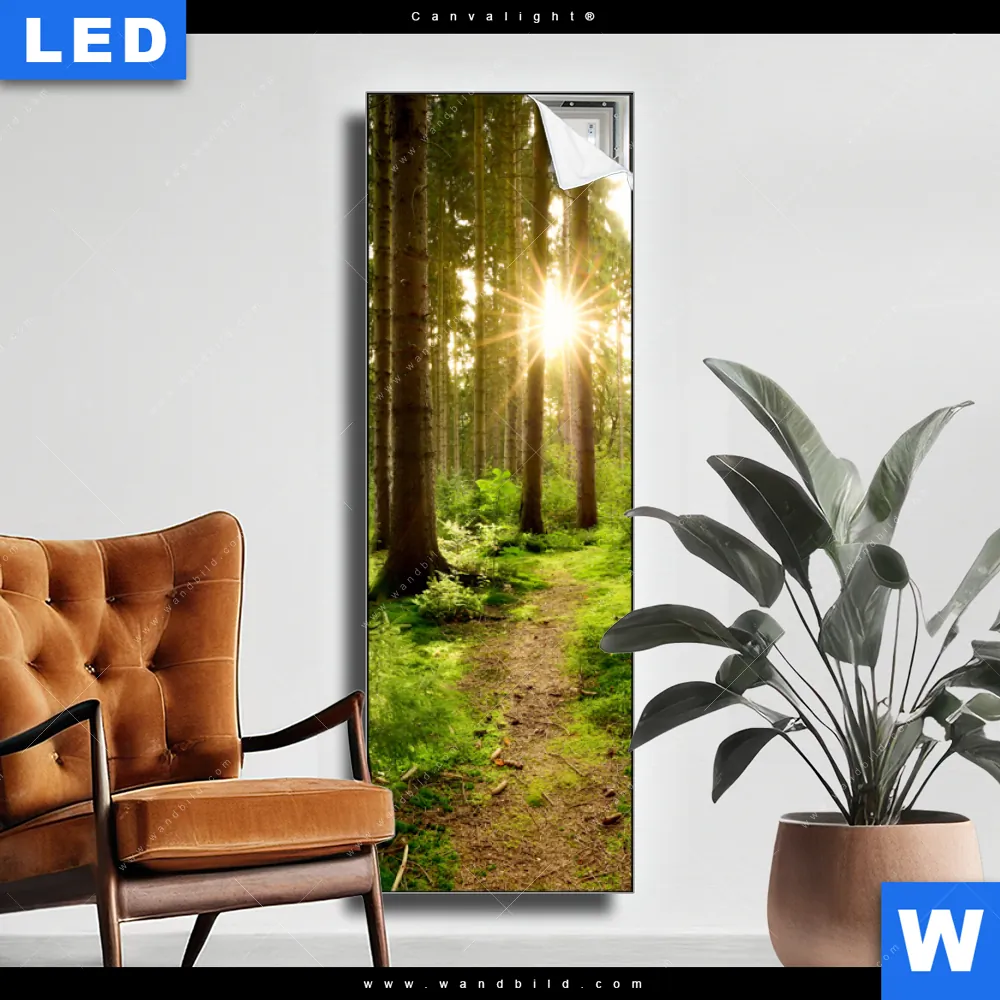 Canvalight® TEX Leuchtbild | Wald mit Sonnenstrahlen No.2 | Schmal