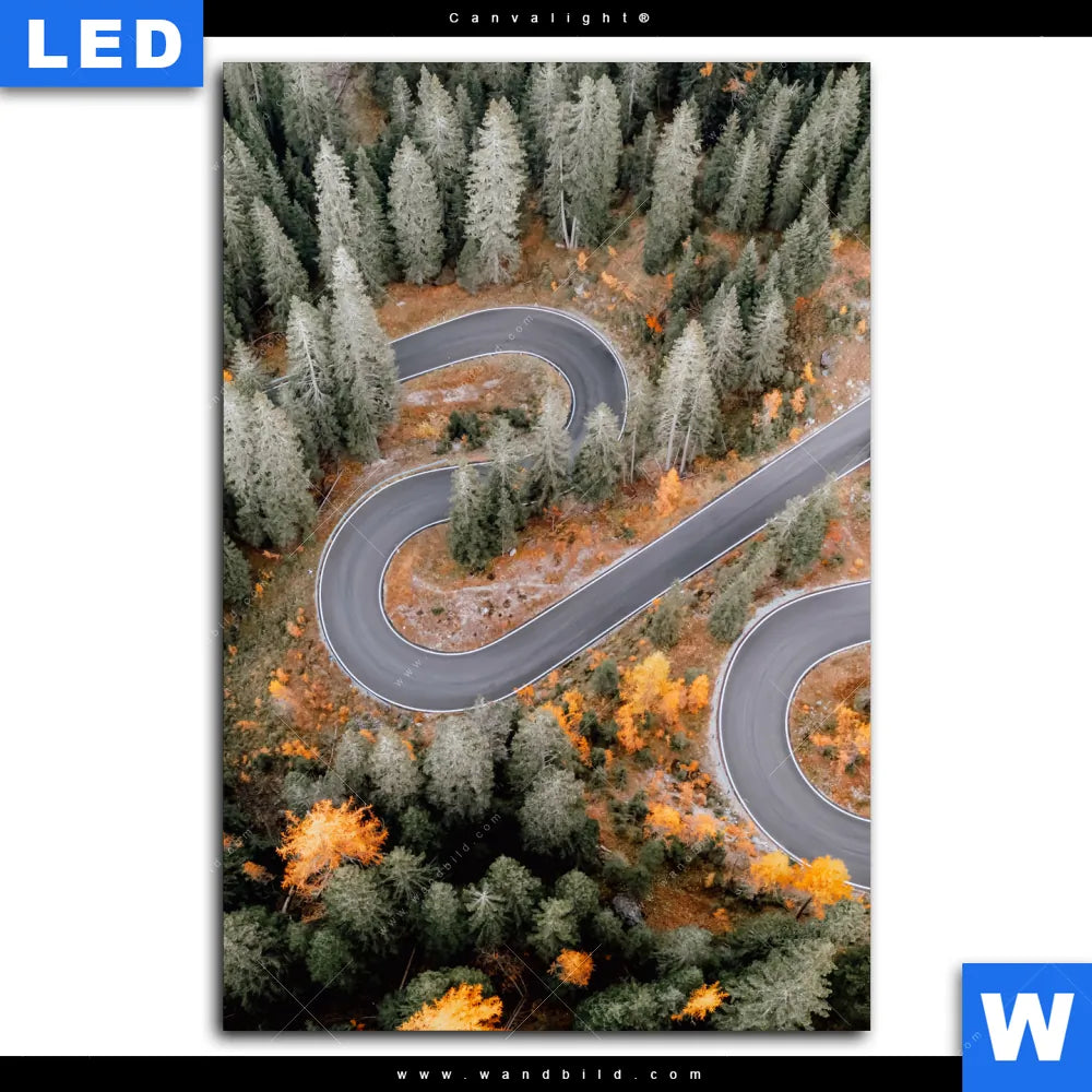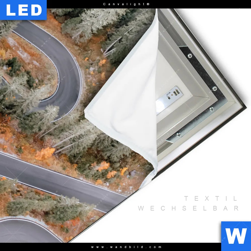 Canvalight® TEX Leuchtbild | Wald & Straße von oben | Hochformat