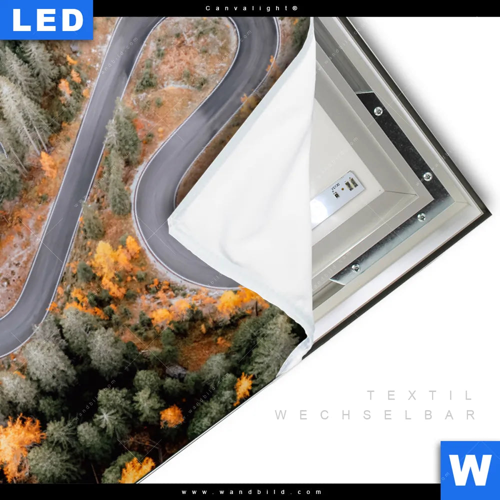 Canvalight® TEX Leuchtbild | Wald & Straße von oben | Querformat
