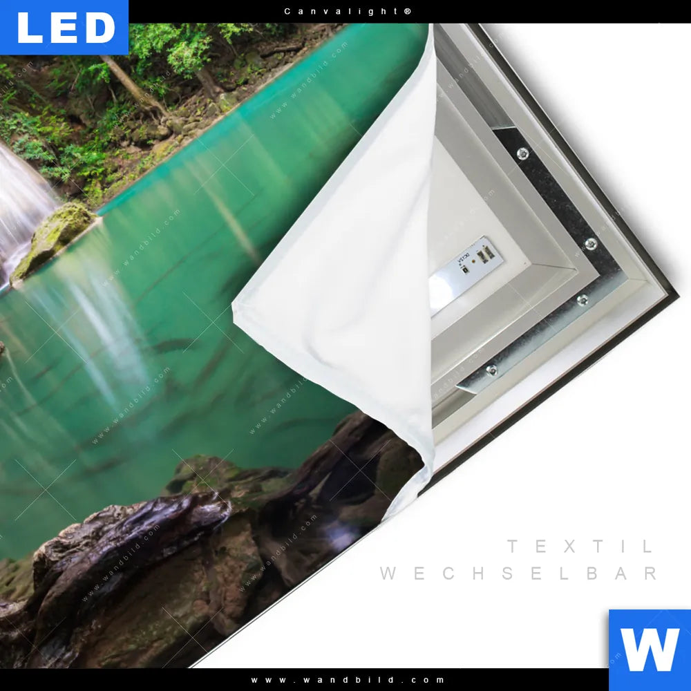 Canvalight® TEX Leuchtbild | Wald & Wasserfall No. 4 | Quadrat