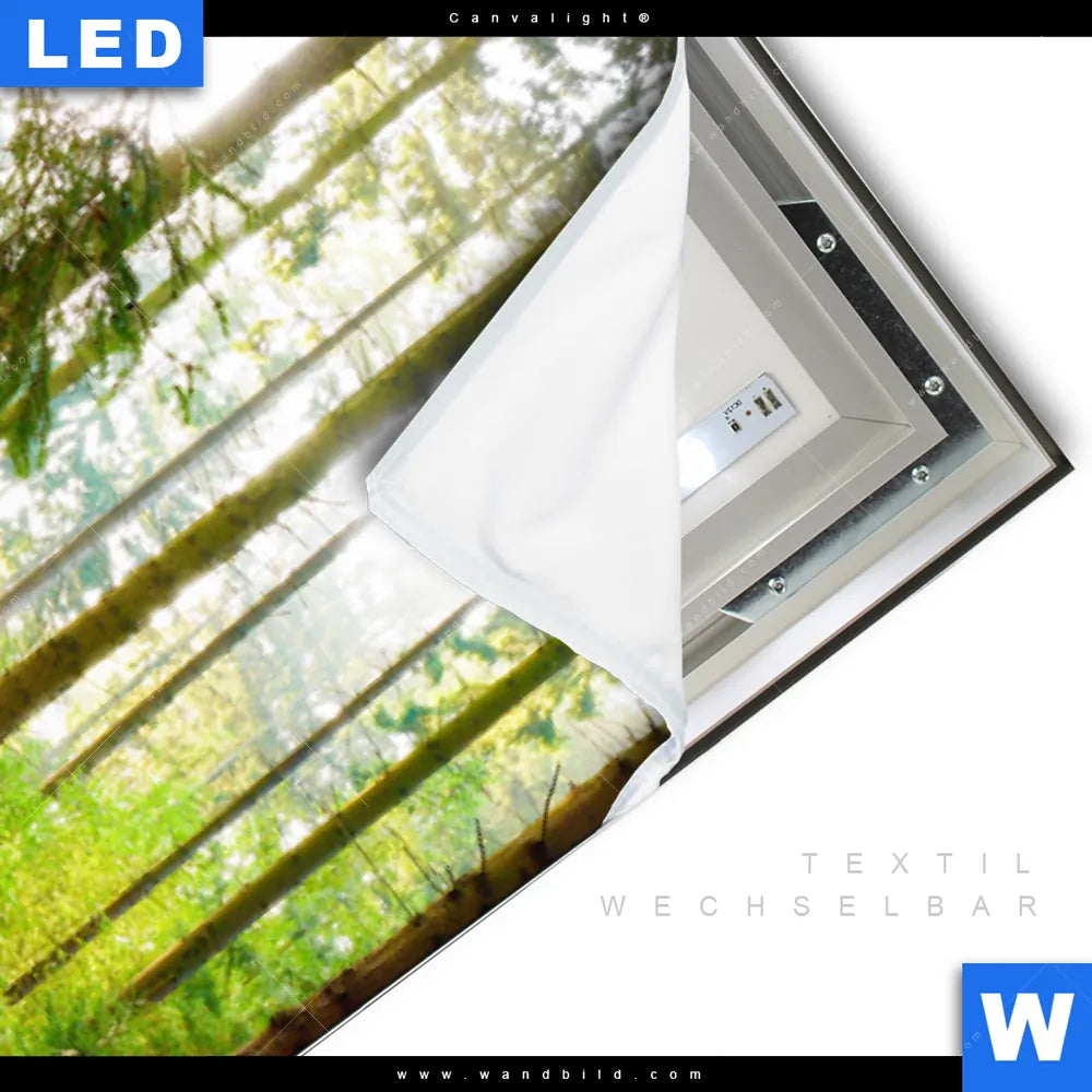 LED-Textilrahmen-Bild mit austauschbarem Landschaften, Wald - Bäume Textil-Druck (Wechselbild)