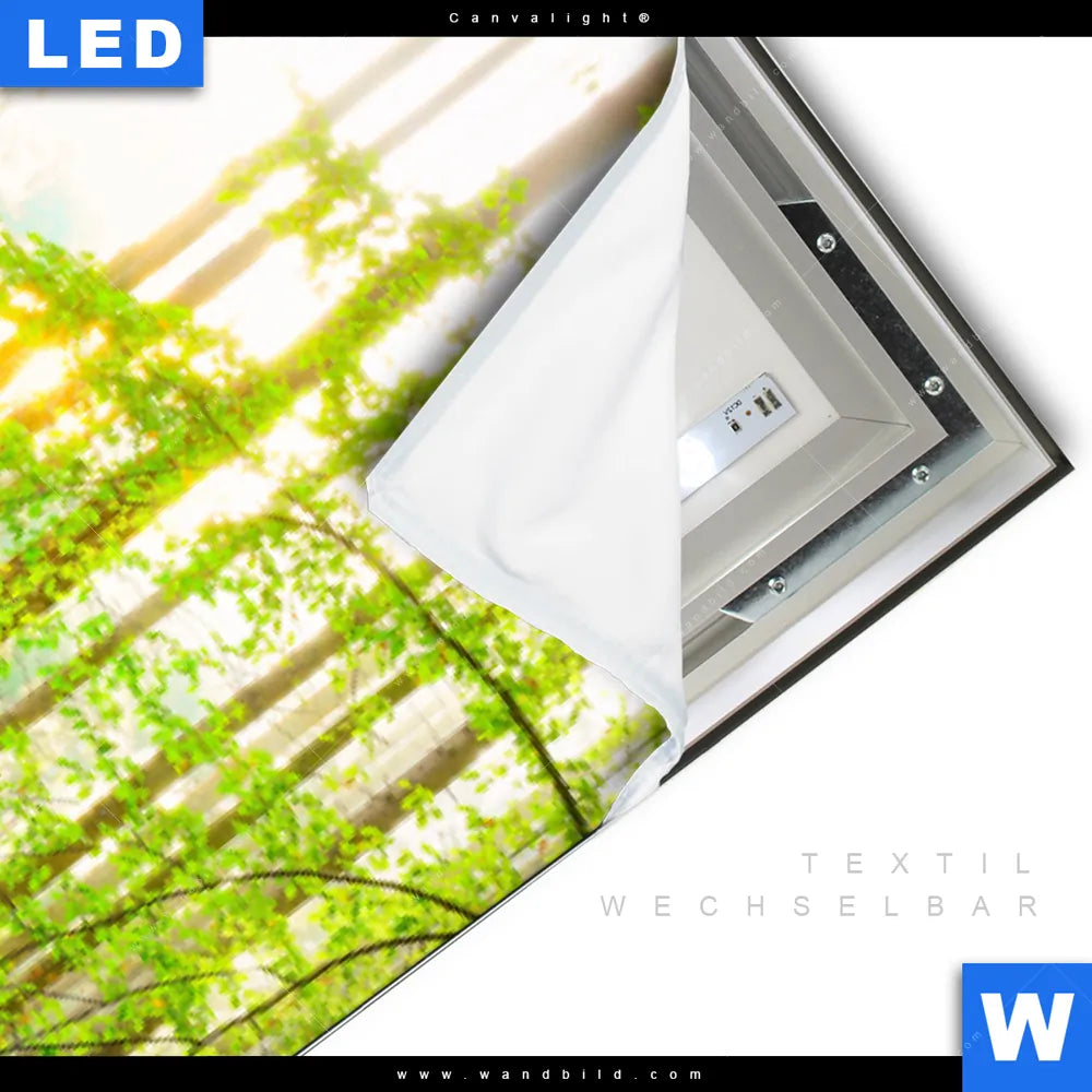 LED-Textilrahmen-Bild mit austauschbarem Landschaften, Wald - Bäume Textil-Druck (Wechselbild)