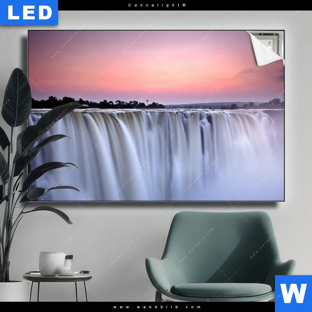 Canvalight® TEX Leuchtbild | Wasserfall bei Abendröte | Querformat