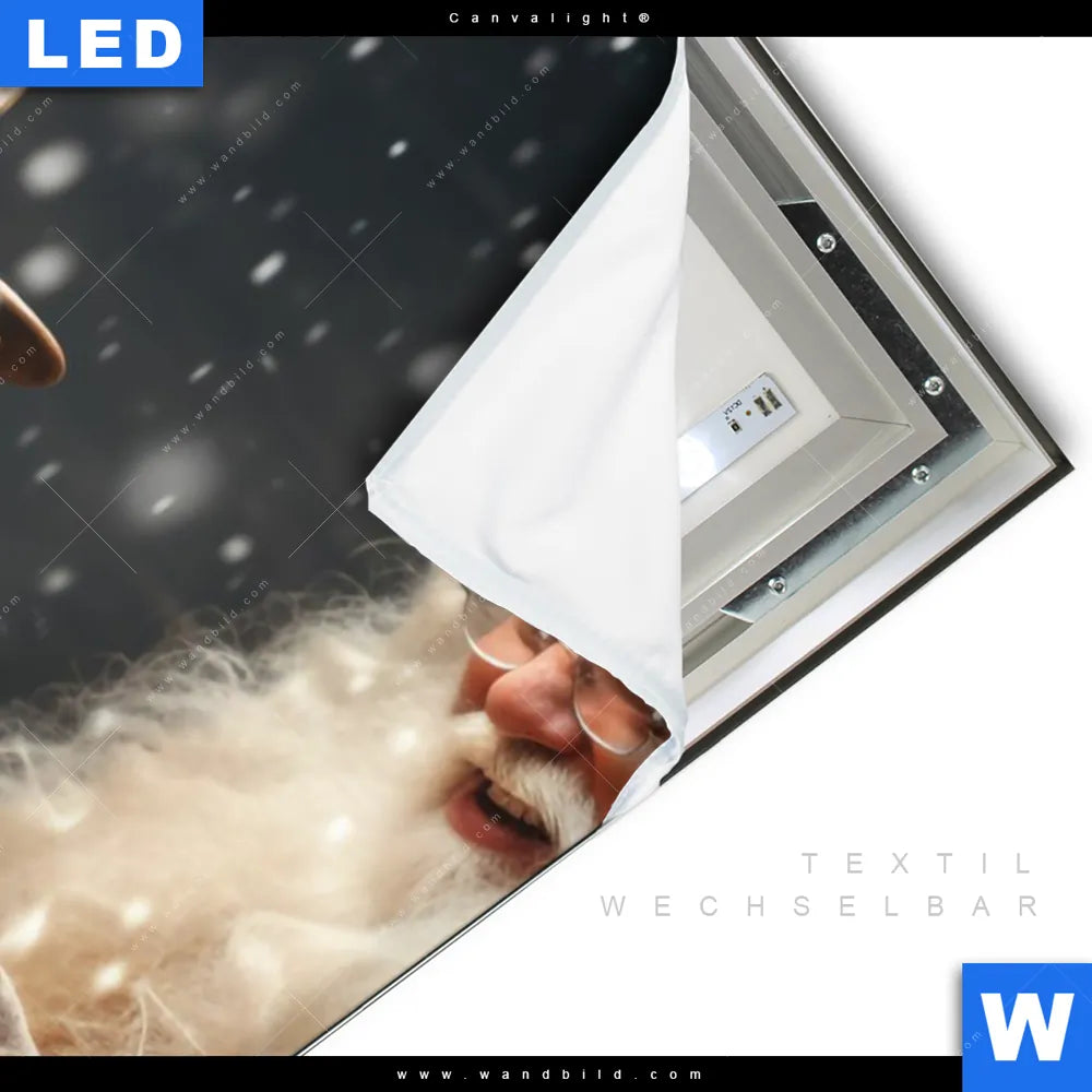 Canvalight® TEX Leuchtbild | Weihnachtsmann füttert Rentier | Hochformat