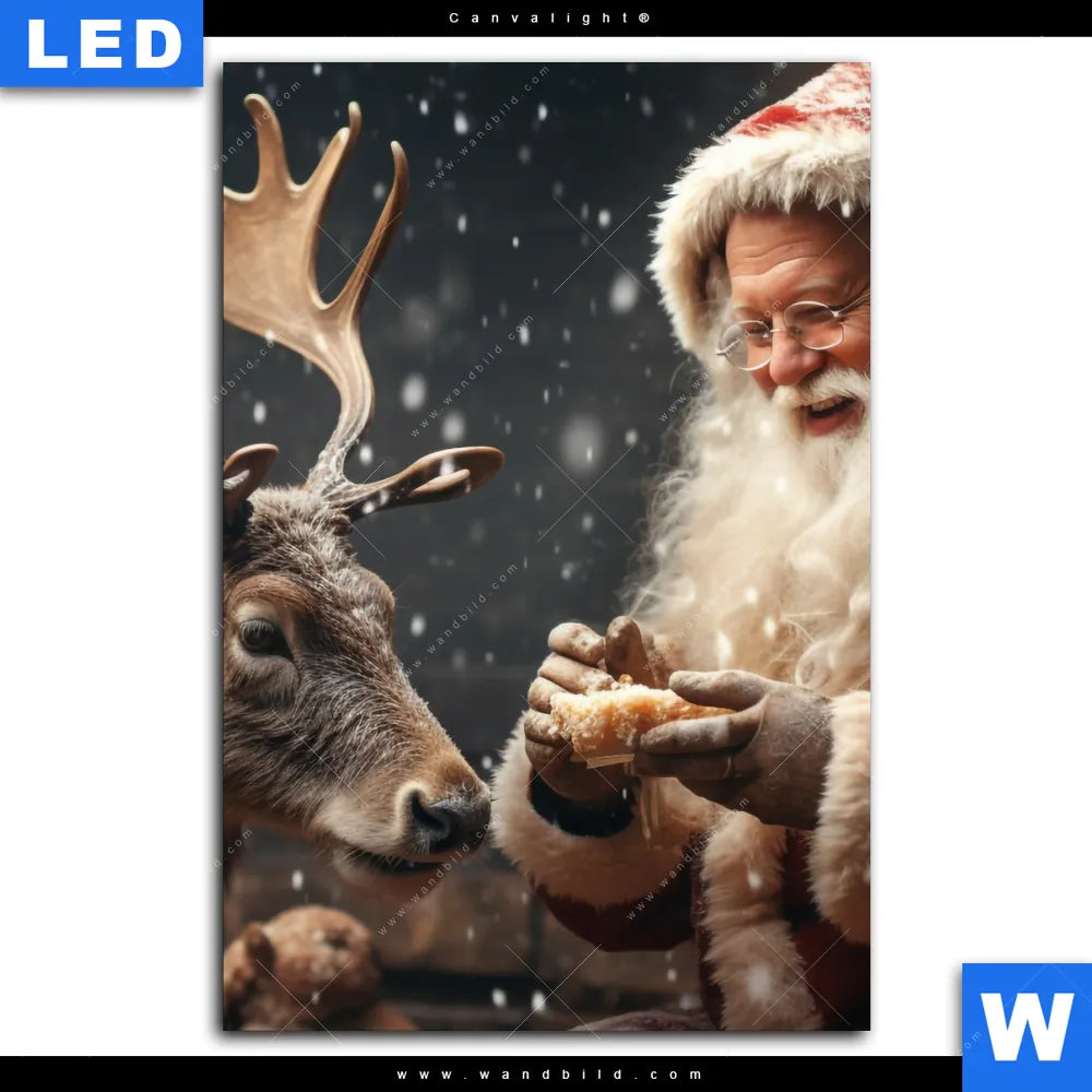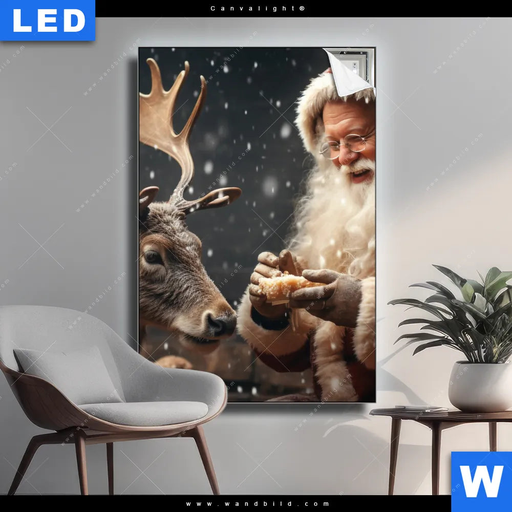 Canvalight® Leuchtbild | Weihnachtsmann füttert Rentier | Hochformat
