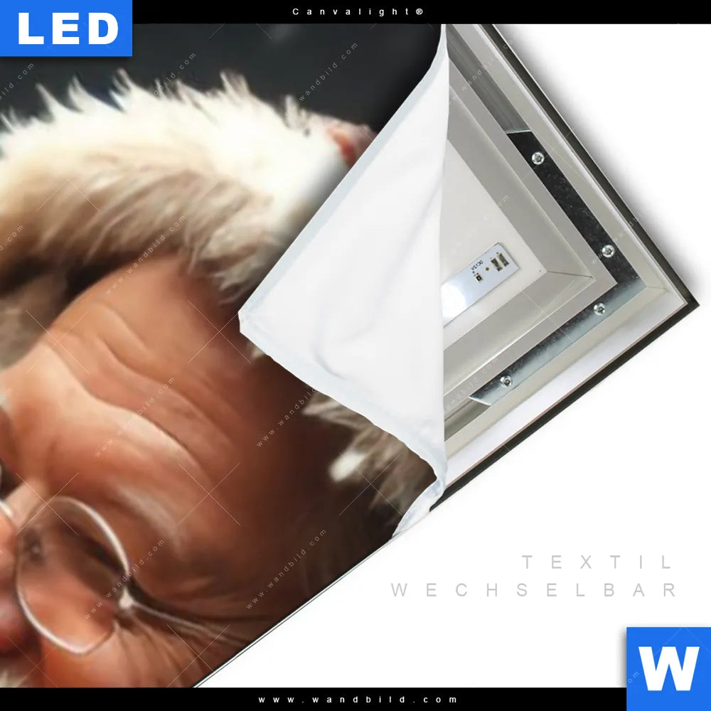 Canvalight® TEX Leuchtbild | Weihnachtsmann füttert Rentier | Schmal