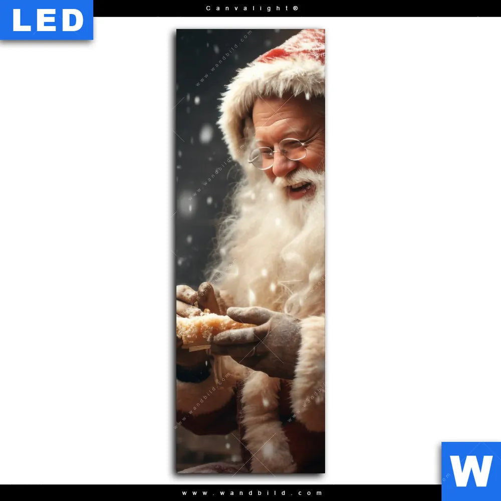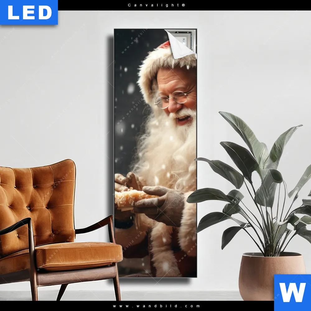 Canvalight® Leuchtbild | Weihnachtsmann füttert Rentier | Schmal