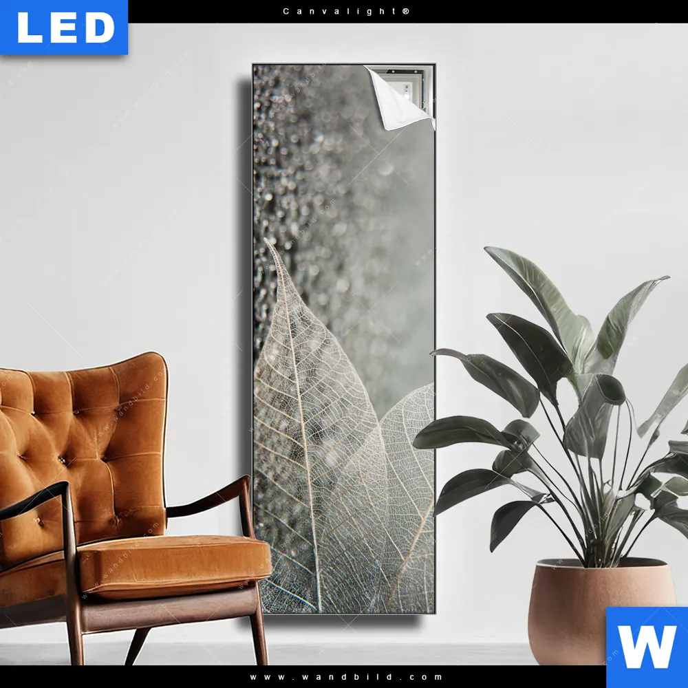 Canvalight® TEX Leuchtbild | Weiße Blätter | Schmal