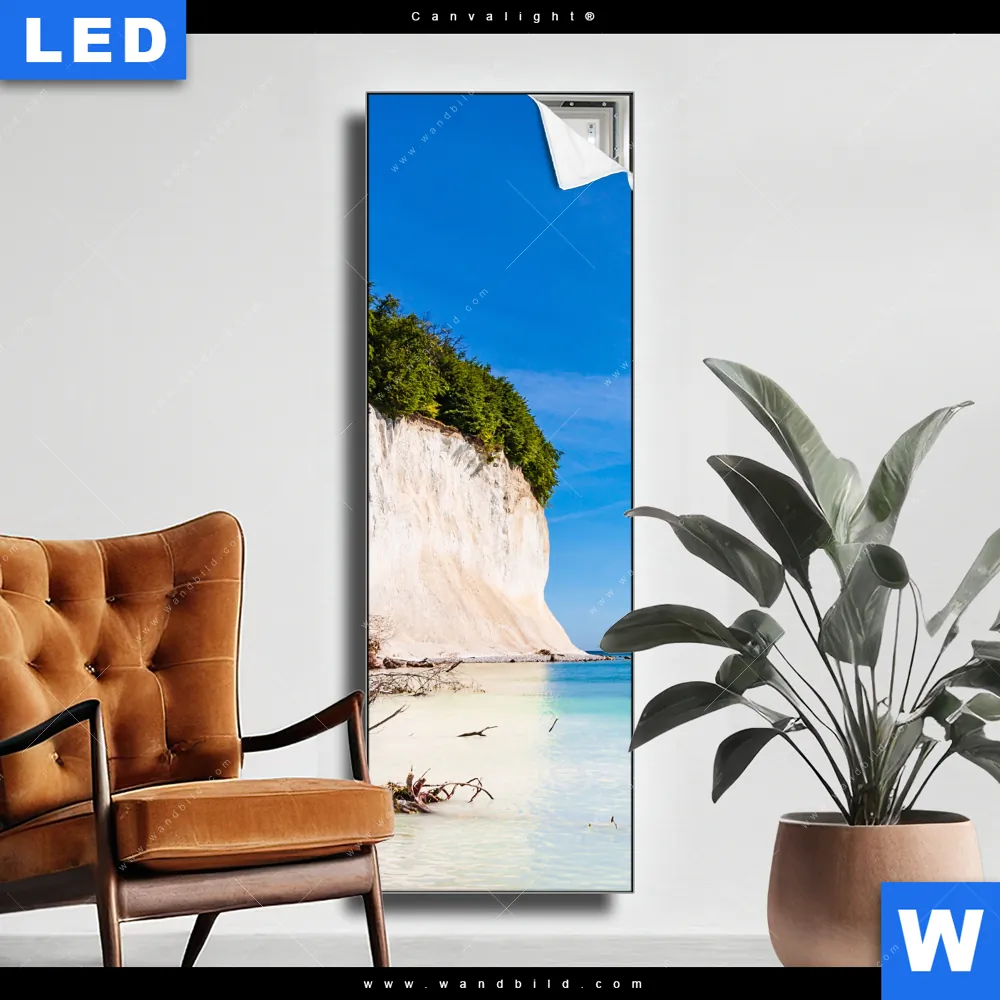 Canvalight® Leuchtbild | Weiße Kreidefelswand am Meer | Schmal