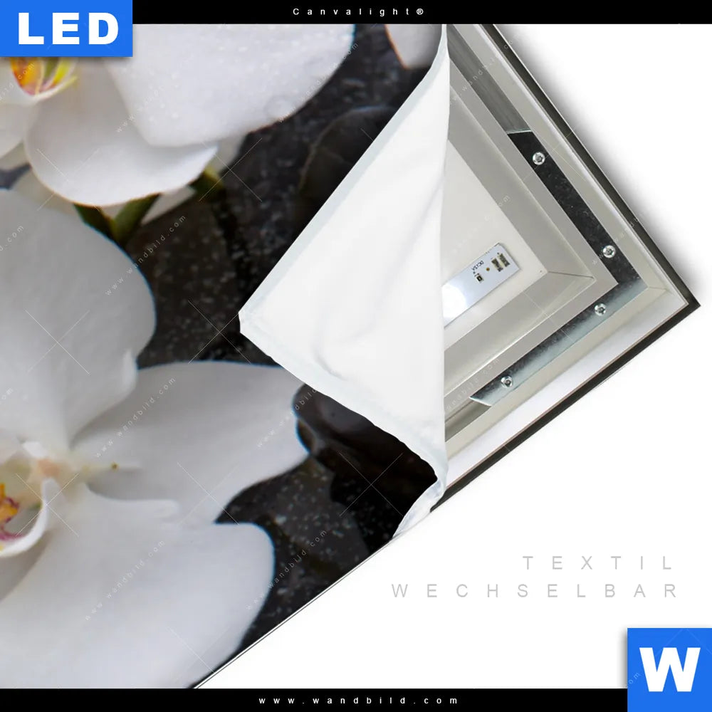 Canvalight® TEX Leuchtbild | Weiße Orchideen | Panorama
