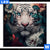 Canvalight® Leuchtbild | Weißer Tiger mit blauen Augen zwischen Blumen | Quadrat