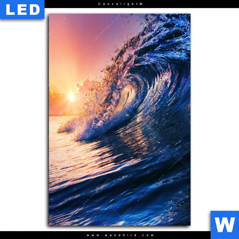Canvalight® Leuchtbild | Welle im Sonnenuntergang | Hochformat