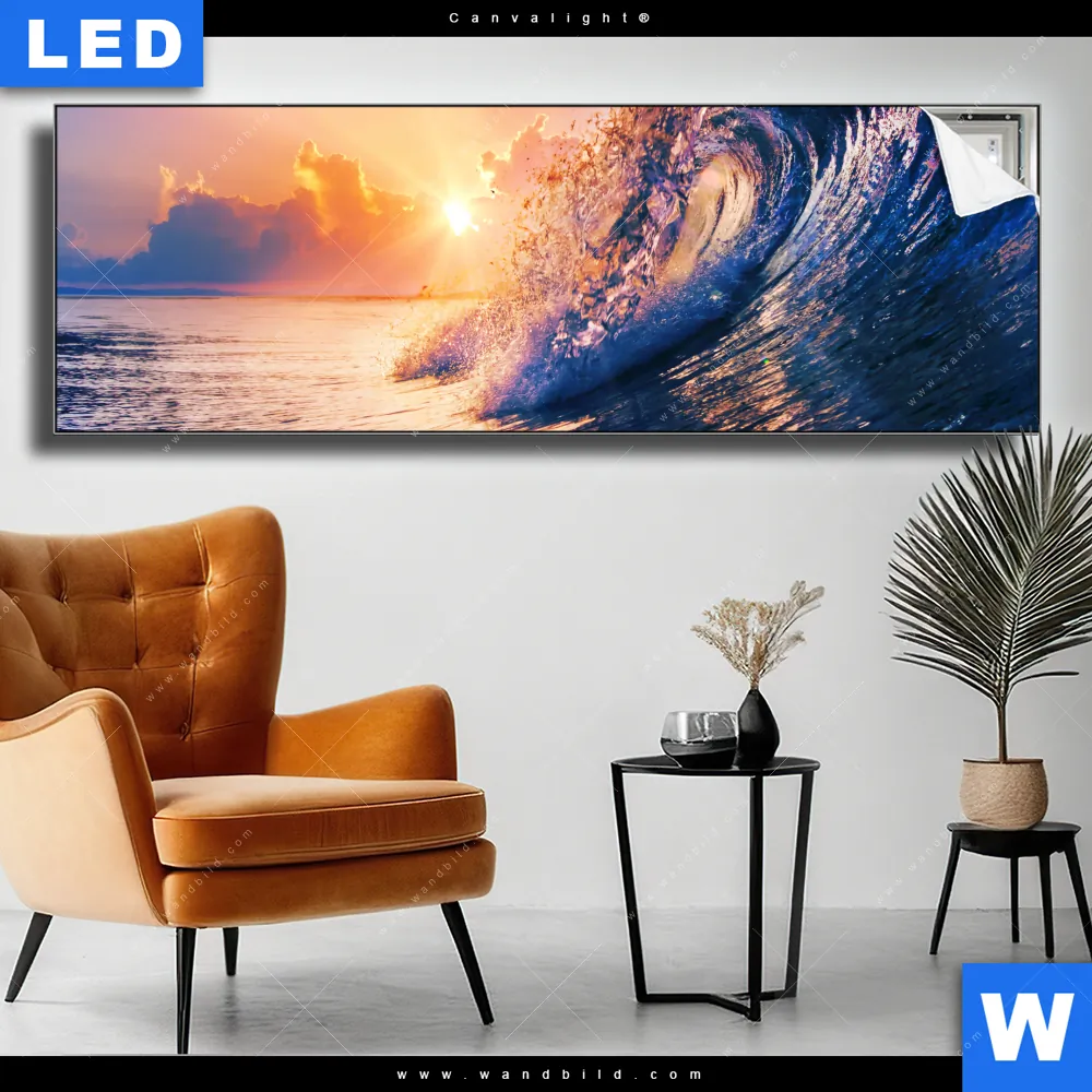 Canvalight® TEX Leuchtbild | Welle im Sonnenuntergang | Panorama