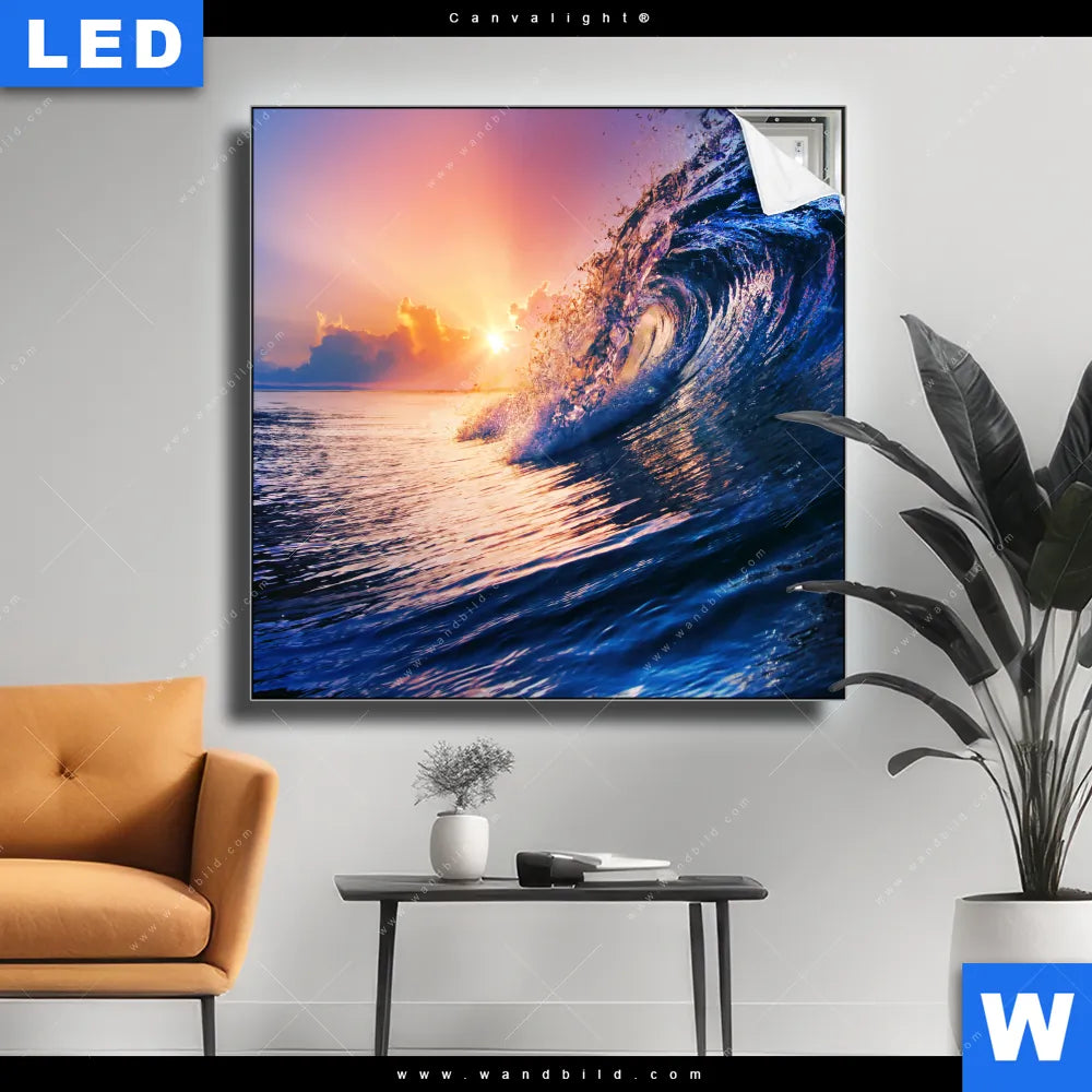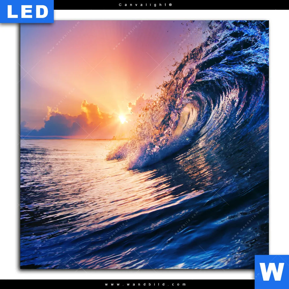 Canvalight® Leuchtbild | Welle im Sonnenuntergang | Quadrat
