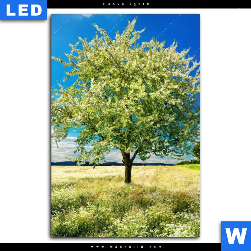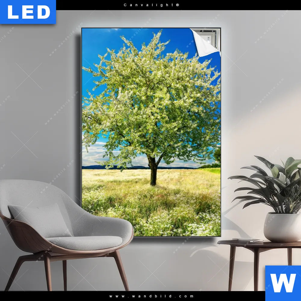 Canvalight® Leuchtbild | Wiese mit blühendem Baum | Hochformat