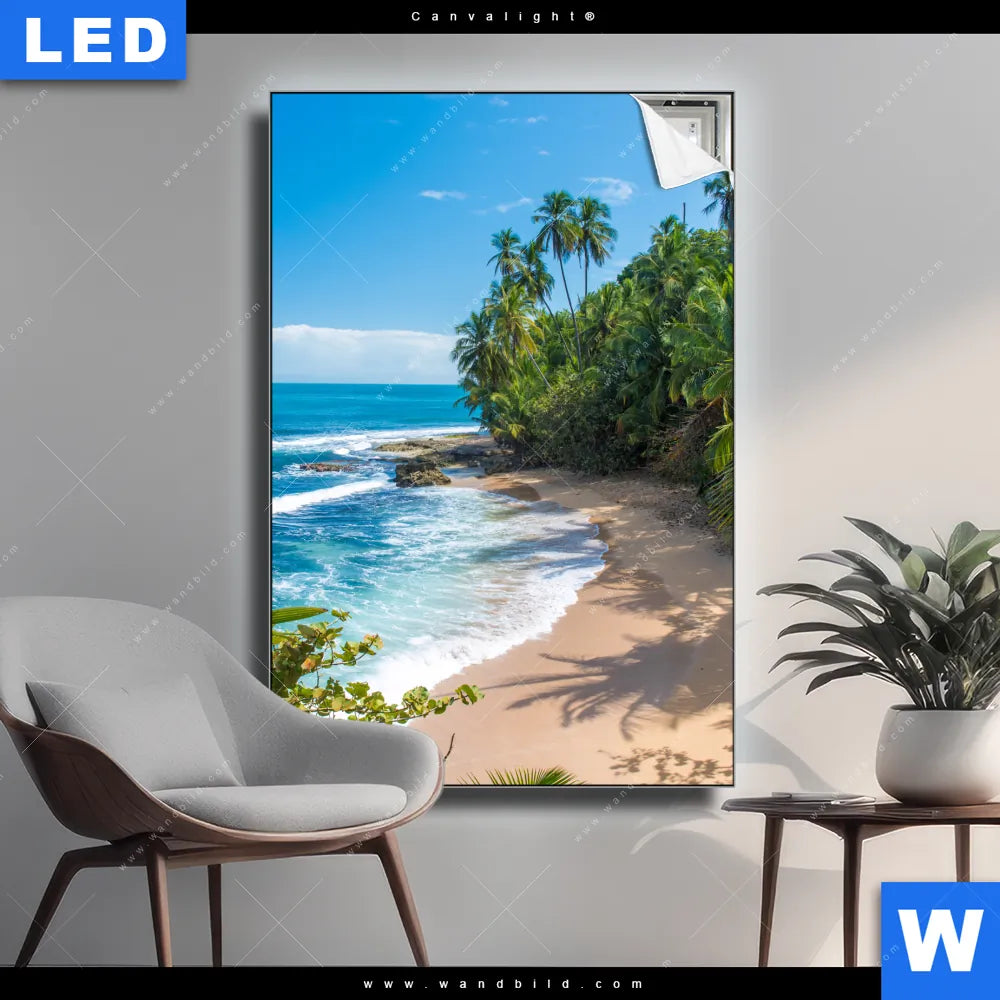 Canvalight® TEX Leuchtbild | Wilder karibischer Strand | Hochformat