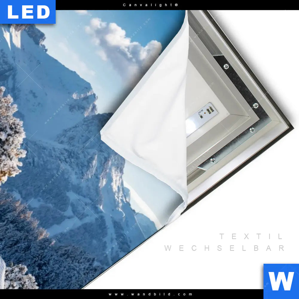 LED-Textilrahmen-Bild mit austauschbarem Landschaften, Winter Textil-Druck (Wechselbild)