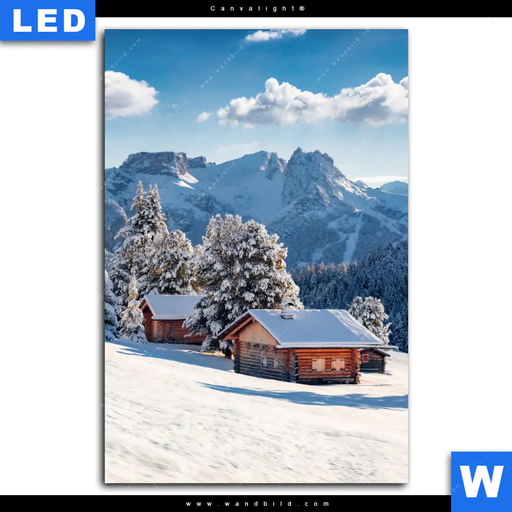 Canvalight® Leuchtbild | Winteridylle in den Bergen | Hochformat