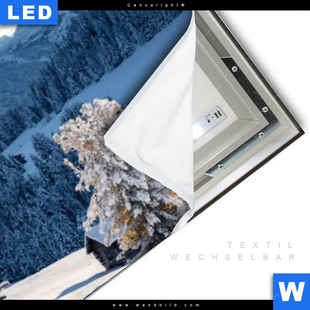 LED-Textilrahmen-Bild mit austauschbarem Landschaften, Winter Textil-Druck (Wechselbild)
