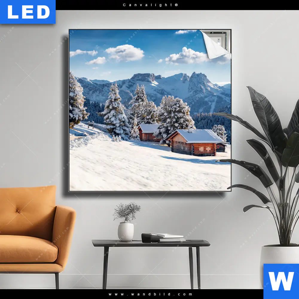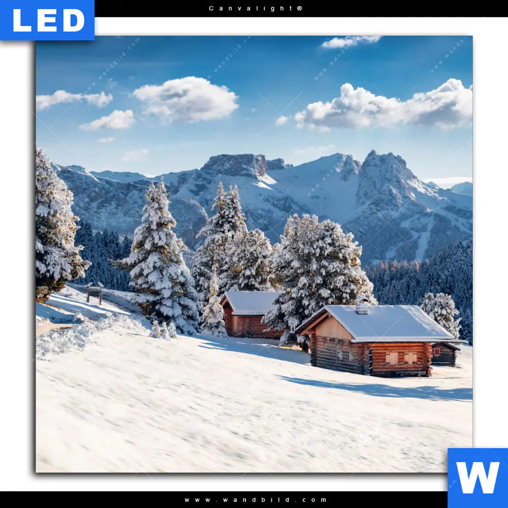 Canvalight® TEX Leuchtbild | Winteridylle in den Bergen | Quadrat