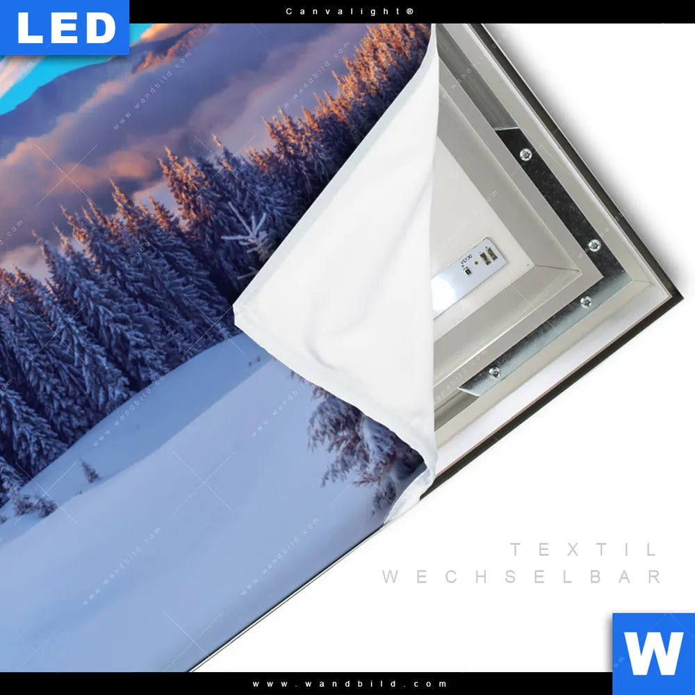 LED-Textilrahmen-Bild mit austauschbarem Landschaften, Winter Textil-Druck (Wechselbild)