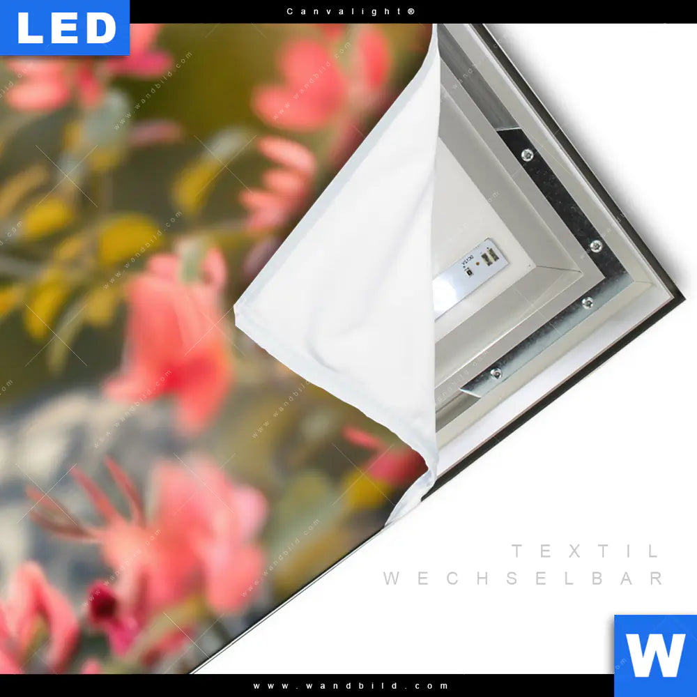LED-Textilrahmen-Bild mit austauschbarem Tierwelt, Blumen - Botanik Textil-Druck (Wechselbild)
