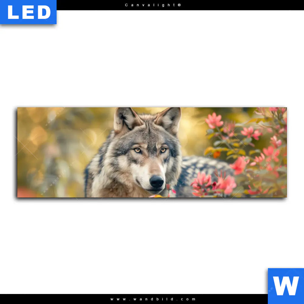 Canvalight® Leuchtbild | Wolfsblick im Frühling | Panorama