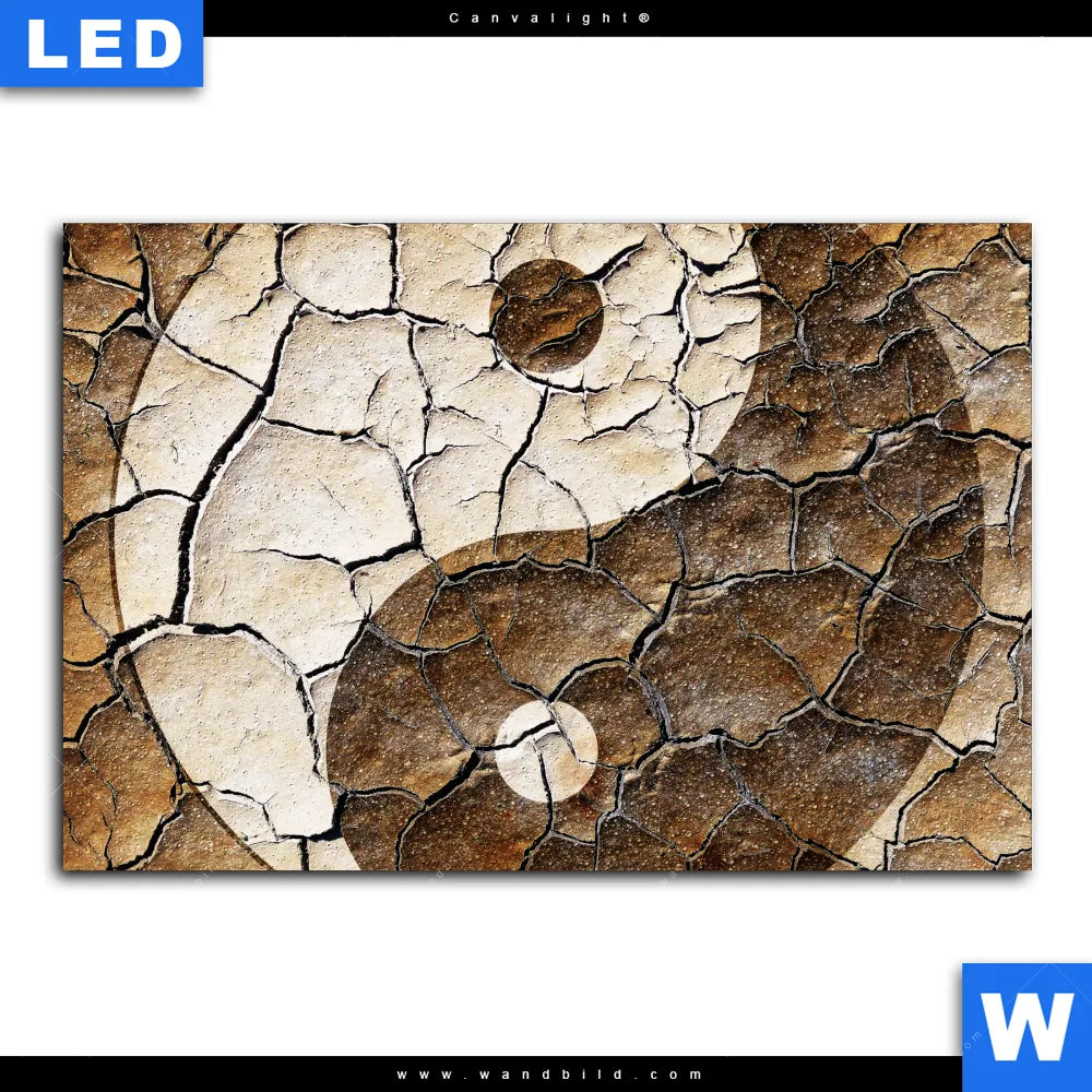 Canvalight® Leuchtbild | Yin Yang auf rissiger Erde | Querformat