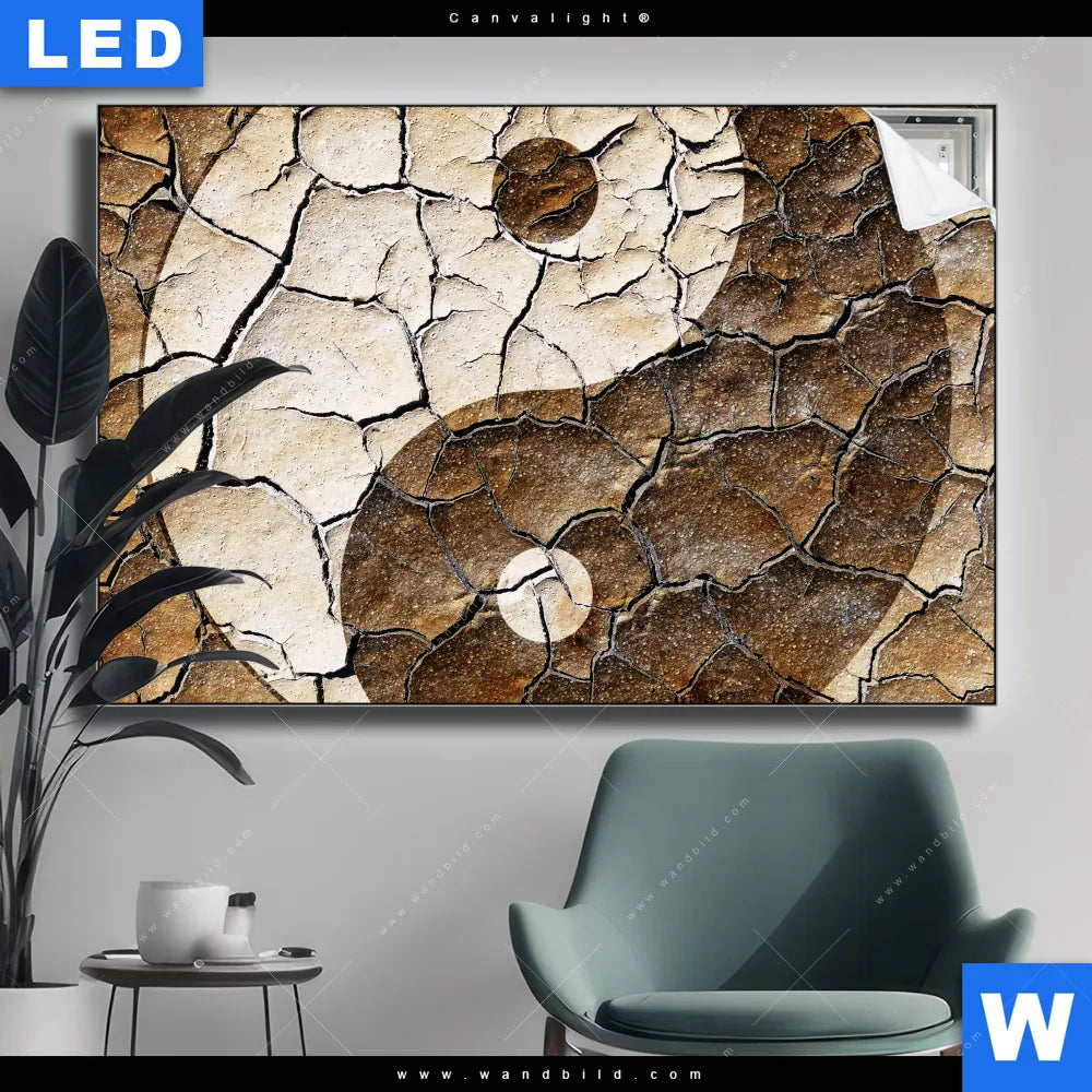 Canvalight® TEX Leuchtbild | Yin Yang auf rissiger Erde | Querformat