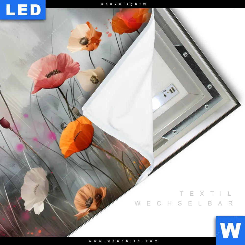 Canvalight® TEX Leuchtbild | Zarte Mohnblumen im Wind | Querformat