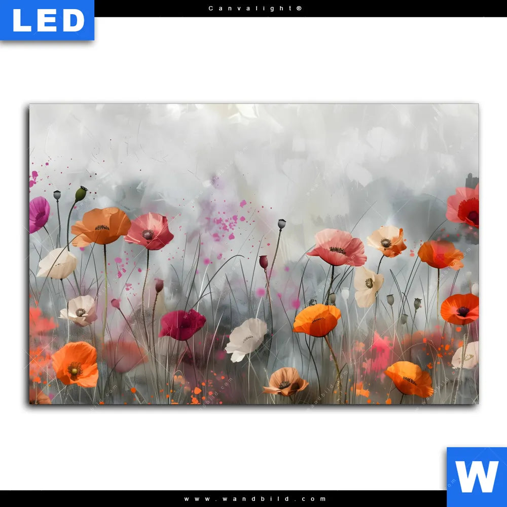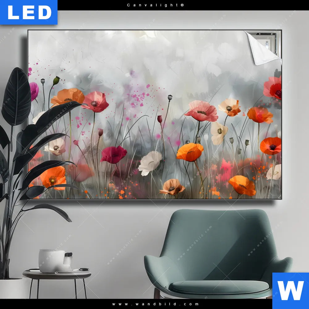Canvalight® Leuchtbild | Zarte Mohnblumen im Wind | Querformat